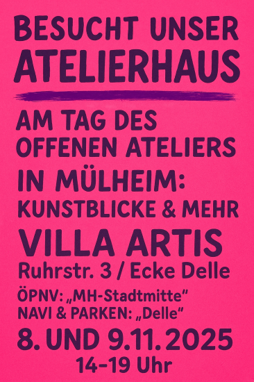 9.11.25 in Mülheim: TAG DES OFFENEN ATELIERS in der Villa Artis - Ruhrstr. 3 / Ecke Delle - Stadtmitte
