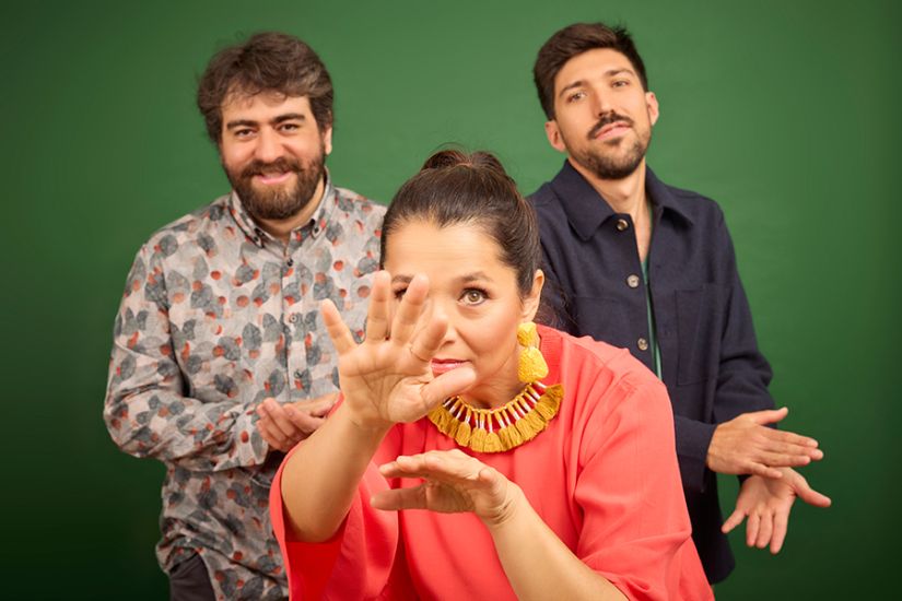„The audience reacts with enthusiastic whistles and loud cheers after the very first piece. The atmosphere is electrifying, there is a palpable connection between listeners and musicians… The spark is ignited when the trio whirls into Donato’s classic A Rã – played with rhythmic virtuosity and a twinkle in their eyes. The voice glides, floats, dives in. The guitar counters with percussive accents, while the piano dances between free improvisation and a tight groove.“