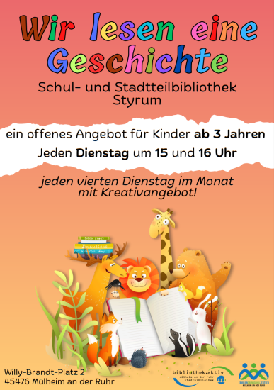 Die Vorlesestunde findet jeden Dienstag um 15 und um 16 Uhr statt. Zusätzlich gibt es heute ein Kreativangebot!