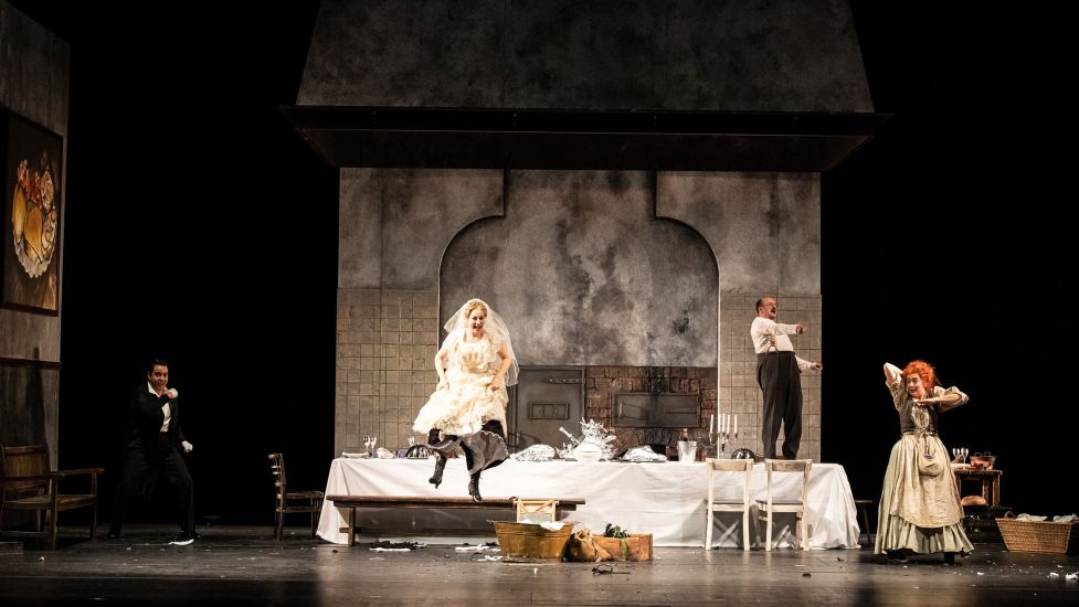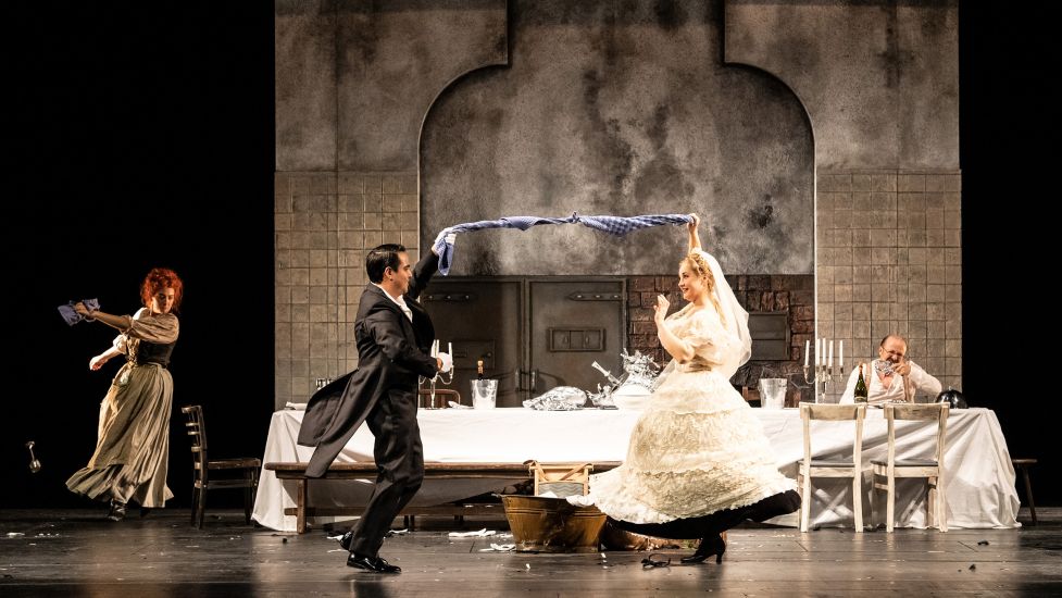 In ‘Masel Tov!’ the Jewish-Polish composer Mieczysław Weinberg (‘The Passenger’) presents his humorous side: between vaudeville and tragi-comic moments he plays on his musical roots. Klezmer melodies can be heard along with waltzes, polkas and galops suffused with the Yiddish musical tradition where bold rhythms and changes of tempi provide the beat. The score is dedicated to his friend Dmitri Shostakovich, whose love of severity he has transposed into his own unmistakable, richly-coloured tonal language.