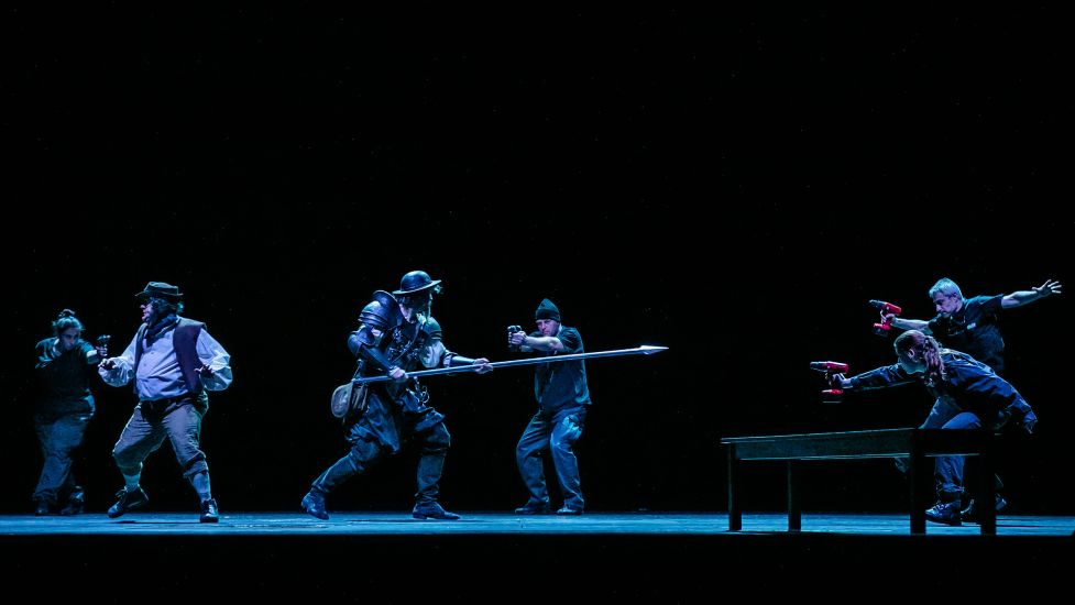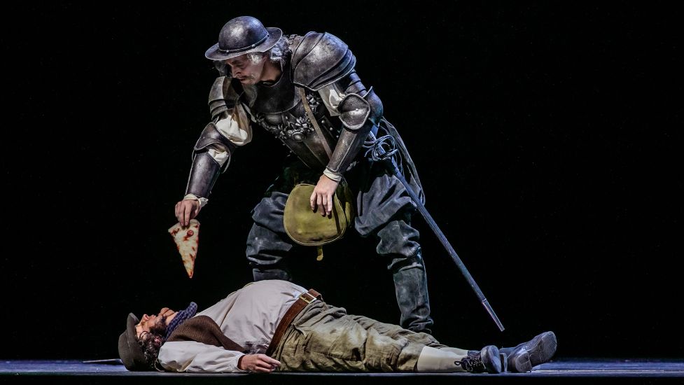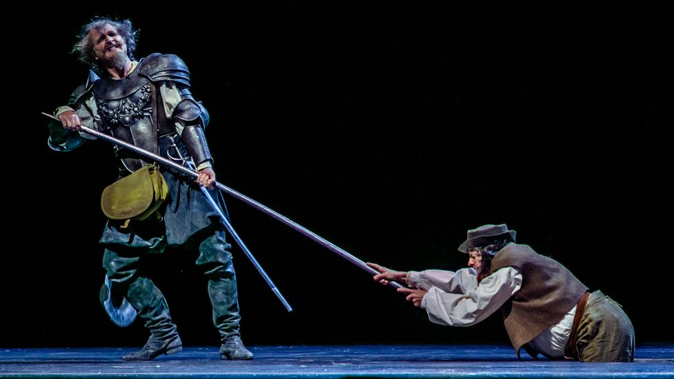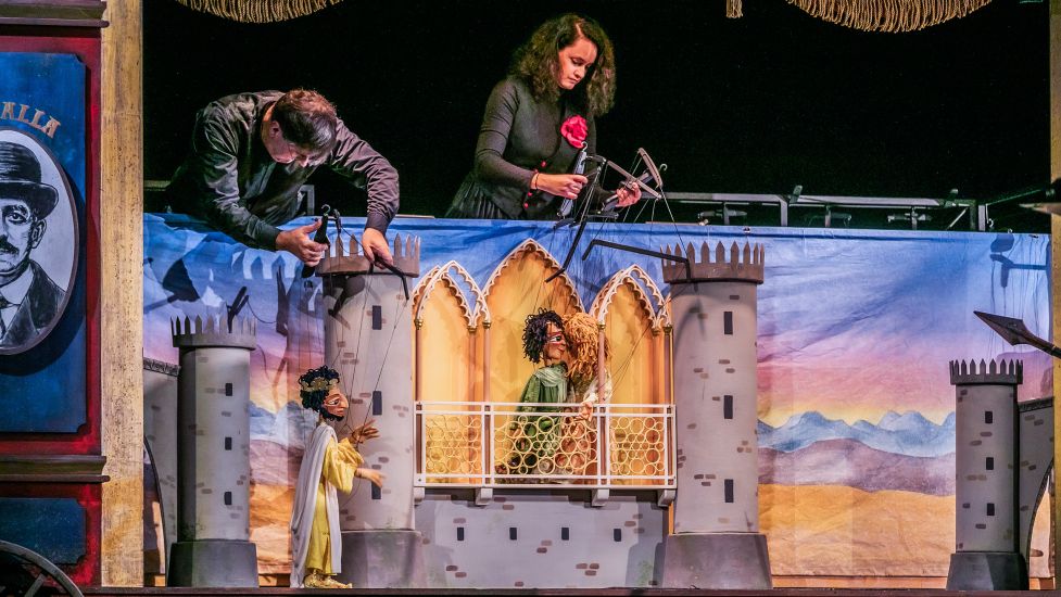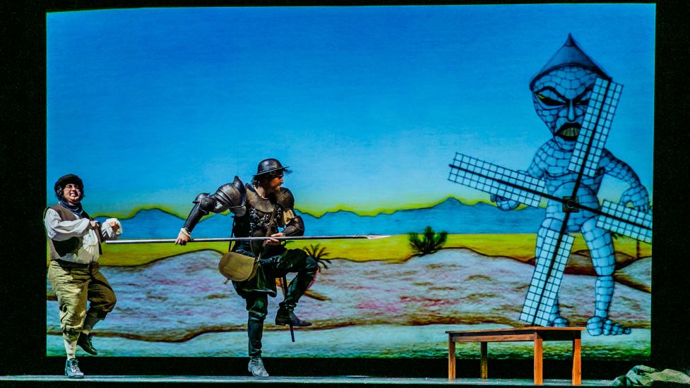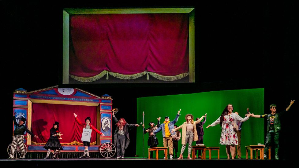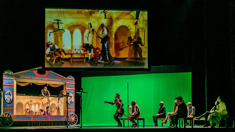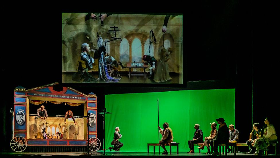As early as the prologue, Don Quijote and his faithful friend Sancho Panza experience all manner of adventures on and with the stage – windmills included – in this family-friendly production by Ilaria Lanzino and Torge Möller (fettfilm). This one-act opera by the Spanish composer Manuel de Falla (1876 – 1946) is a charming chamber piece, a play within a play, with the internationally renowned Düsseldorfer Marionetten-Theater bringing the story of Maestro Pedro’s travelling theatre to life until Don Quijote leaps directly onto the puppet stage with the help of live video and a little magic!